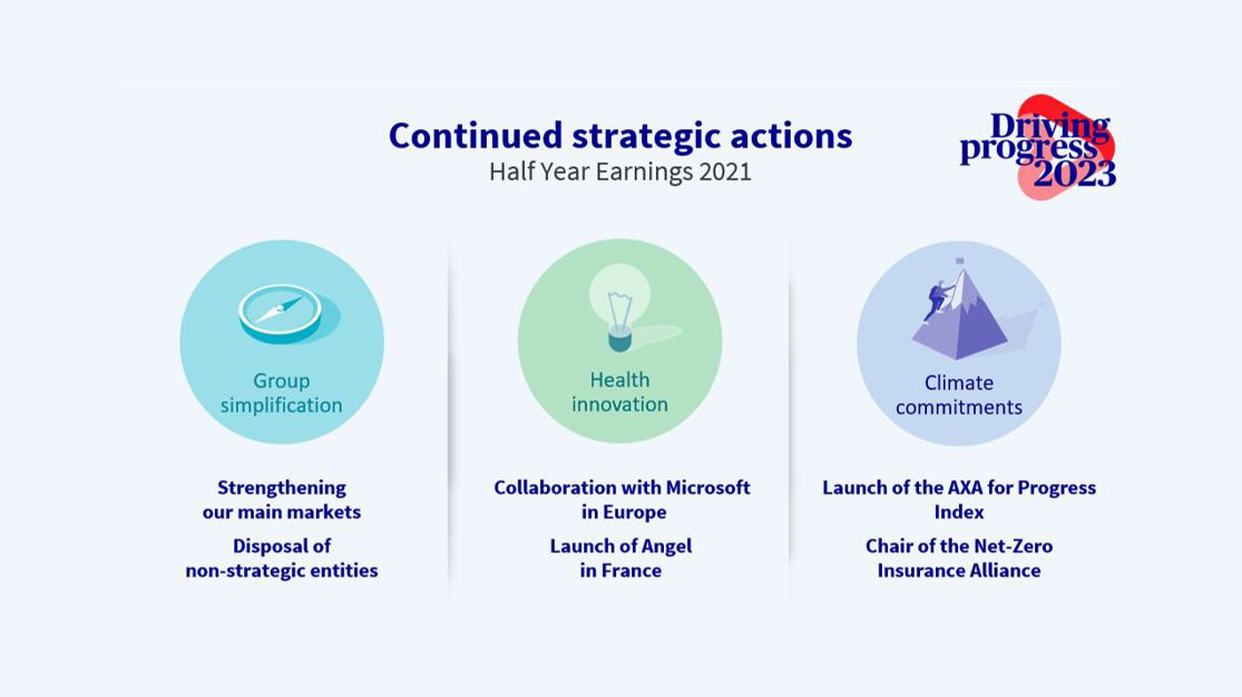 As part of Driving Progress 2023, AXA continues its transformation journey with the deployment of innovative health services, notably with the launch of a digital health platform with Microsoft. The Group is playing an active role in society by supporting the economic recovery and strengthening further its engagement towards shaping climate transition.