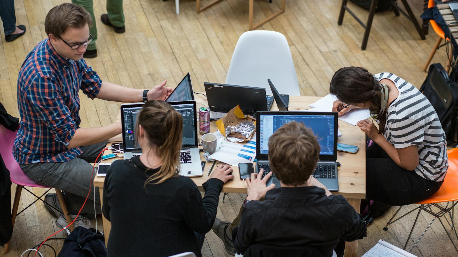 The AXA Drones team (Guillaume on the left, and Laura in front of him, on the right), during Start-in hackathon in 2015