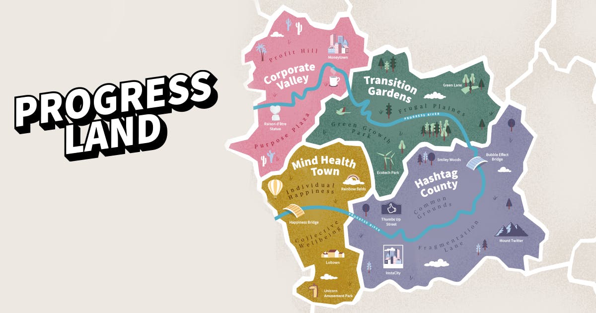 , composé de quatre districts, cette publication de type magazine aborde les multiples visions du progrès en les associant aux grandes mutations sociétales telles que l’avenir des entreprises, l’environnement, la polarisation sociale et la santé mentale et le bien-être.