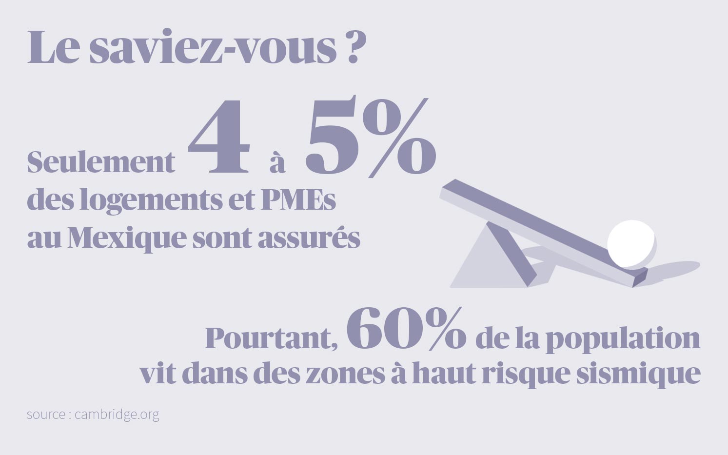 La mission de Construyendo est d’aider les victimes de ces tremblements de terre à reconstruire leurs maisons et leurs vies. Ce genre d’aide est importante dans un pays comme le Mexique, où peu de personnes sont assurées. Cette situation est fréquente dans les marchés émergents, où le taux de pénétration des assurances est généralement faible, mais au Mexique, elle est exacerbée par le fatalisme des Mexicains, pour qui la foi, et en particulier en la patronne du pays, la Virgen de Guadalupe, protège plus que tout autre chose.
