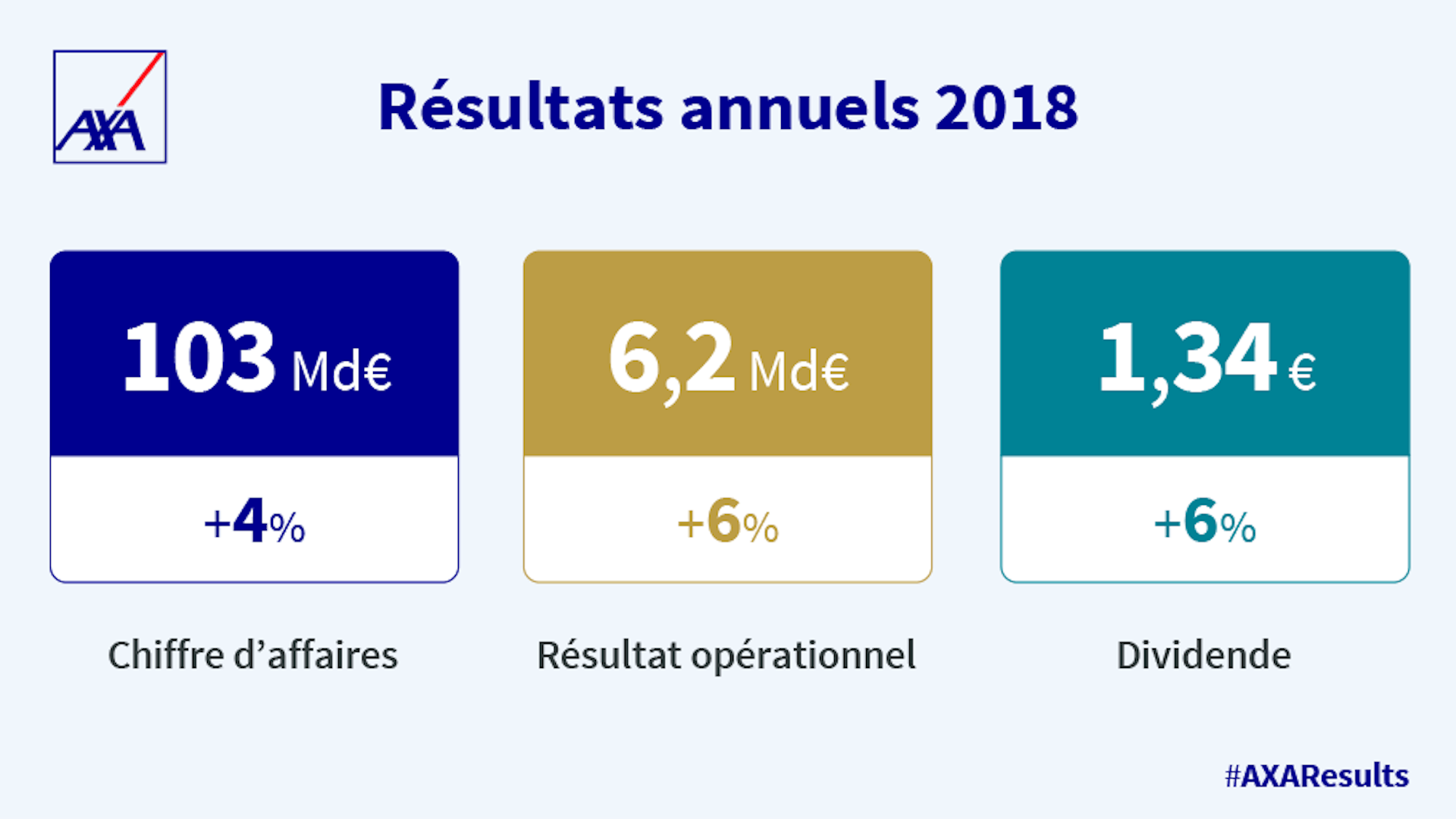 AXA réalise une nouvelle fois une très bonne performance en 2018, illustrée par un résultat opérationnel à un plus haut historique, en progression de 6%, en dépit d’une baisse de notre détention dans AXA Equitable Holdings, Inc. et du niveau anormalement élevé des catastrophes naturelles au cours du quatrième trimestre.