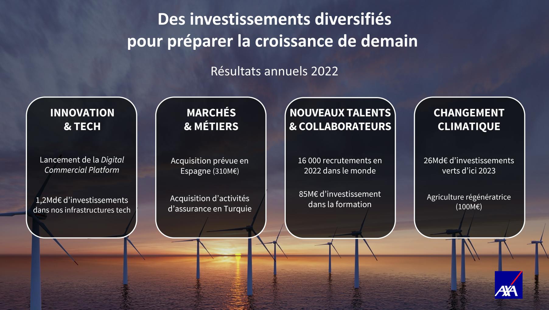 Nous restons focalisés sur la mise en oeuvre de notre stratégie. La croissance du chiffre d’affaires a été forte dans nos lignes de métier techniques et génératrices de trésorerie, particulièrement en assurance dommage, en santé et en prévoyance, tandis que nous continuons de réduire notre exposition aux catastrophes naturelles en réassurance et aux produits d’épargne traditionnels. Nos fondamentaux sont solides, et nous disposons d’une franchise unique capable de générer à l’avenir une croissance durable, en particulier en répondant à l’émergence de nouveaux besoins de couverture, notamment en matière de transition énergétique.