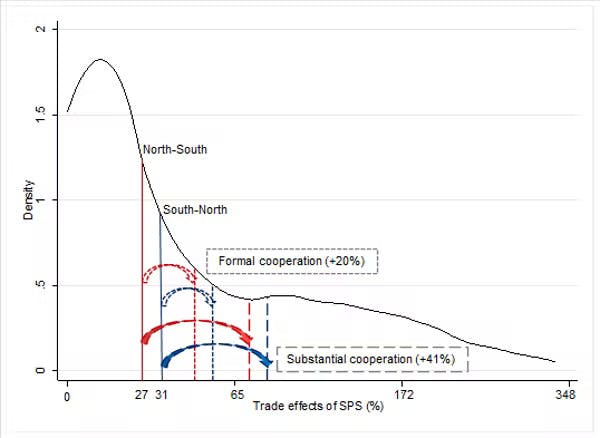 Retombées positives des mesures SPS et de la cooptation – Effets sur le commerce agricole entre le Nord et le Sud. Authors’ elaboration